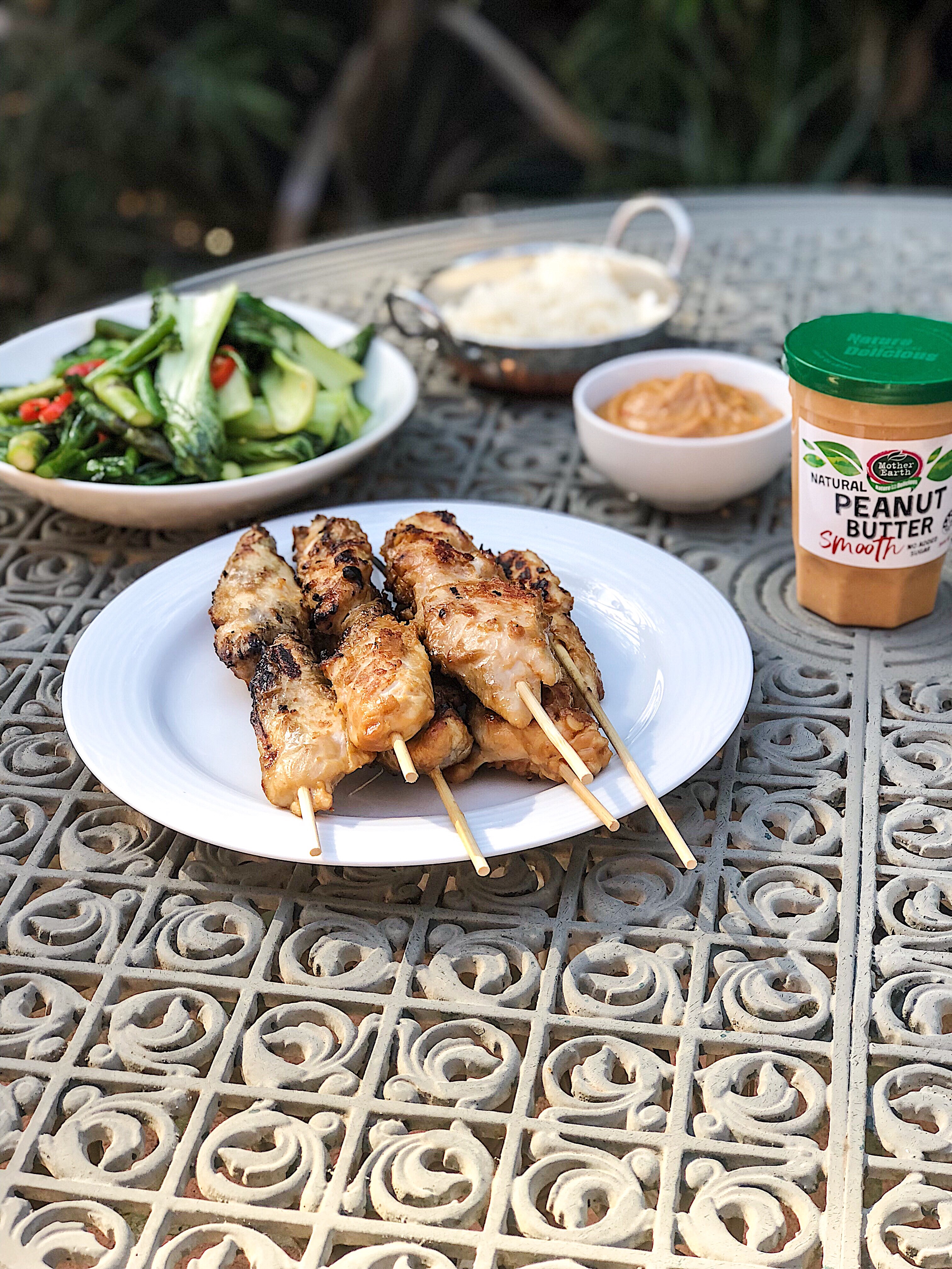 Stuck for dinner ideas? These Satay Chicken Skewers are made delicious with Mother Earth Crunchy Peanut Butter.