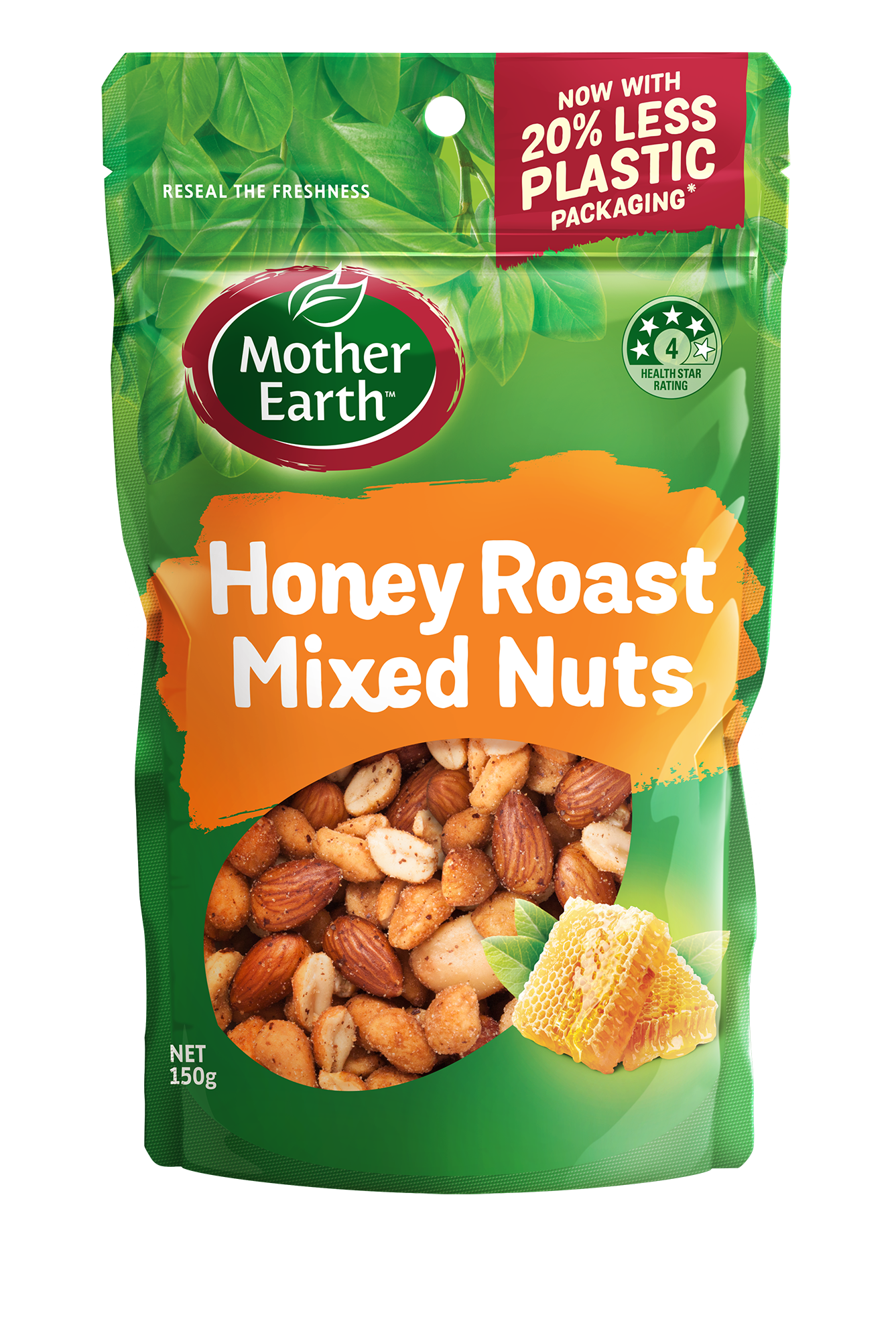A blend of roasted peanuts, almonds, cashews and macadamias with honey flavouring.