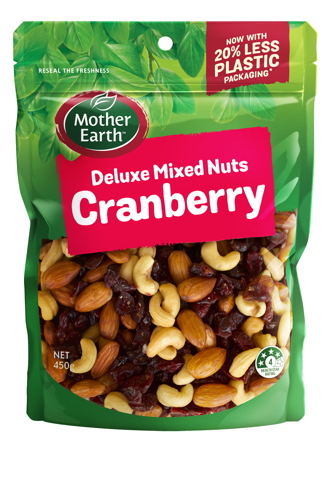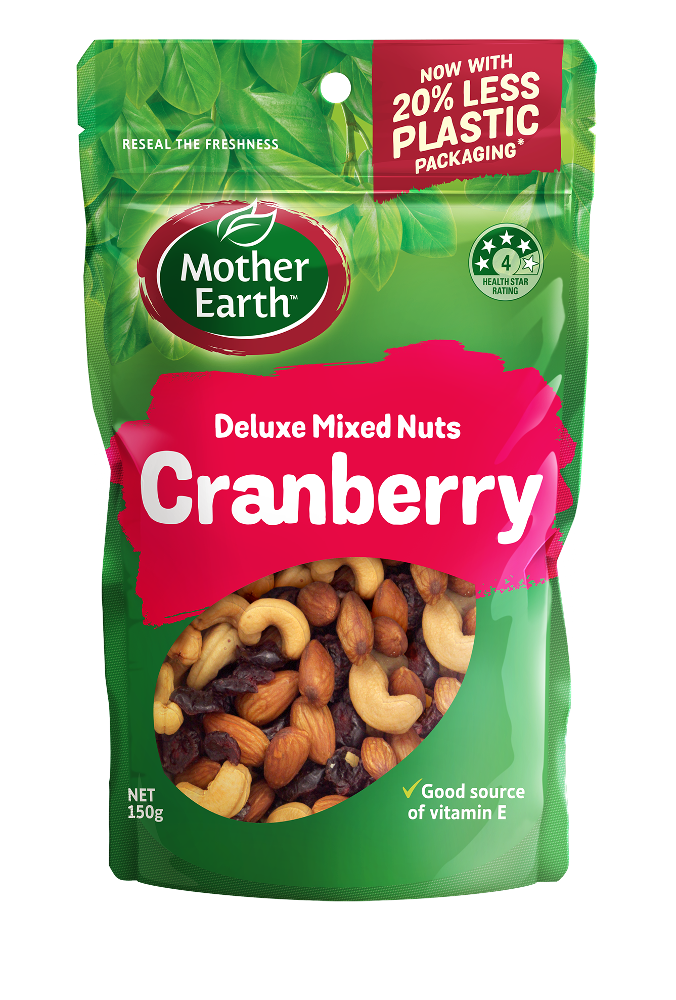 A delicious blend of freshly batch roasted almonds and cashews combined with the tangy sweetness of cranberries well known for their antioxidant content.